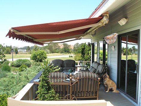 Retractable Awnings bring much valued shade to your porch, deck or patio. Convenient and easy to operate, our attractive fabric awnings provide shade at your fingertips. Enjoy the sun when you want to sunbathe or take the chill off an early spring day, and simply push a button or tap your app when the sun becomes too hot to handle.